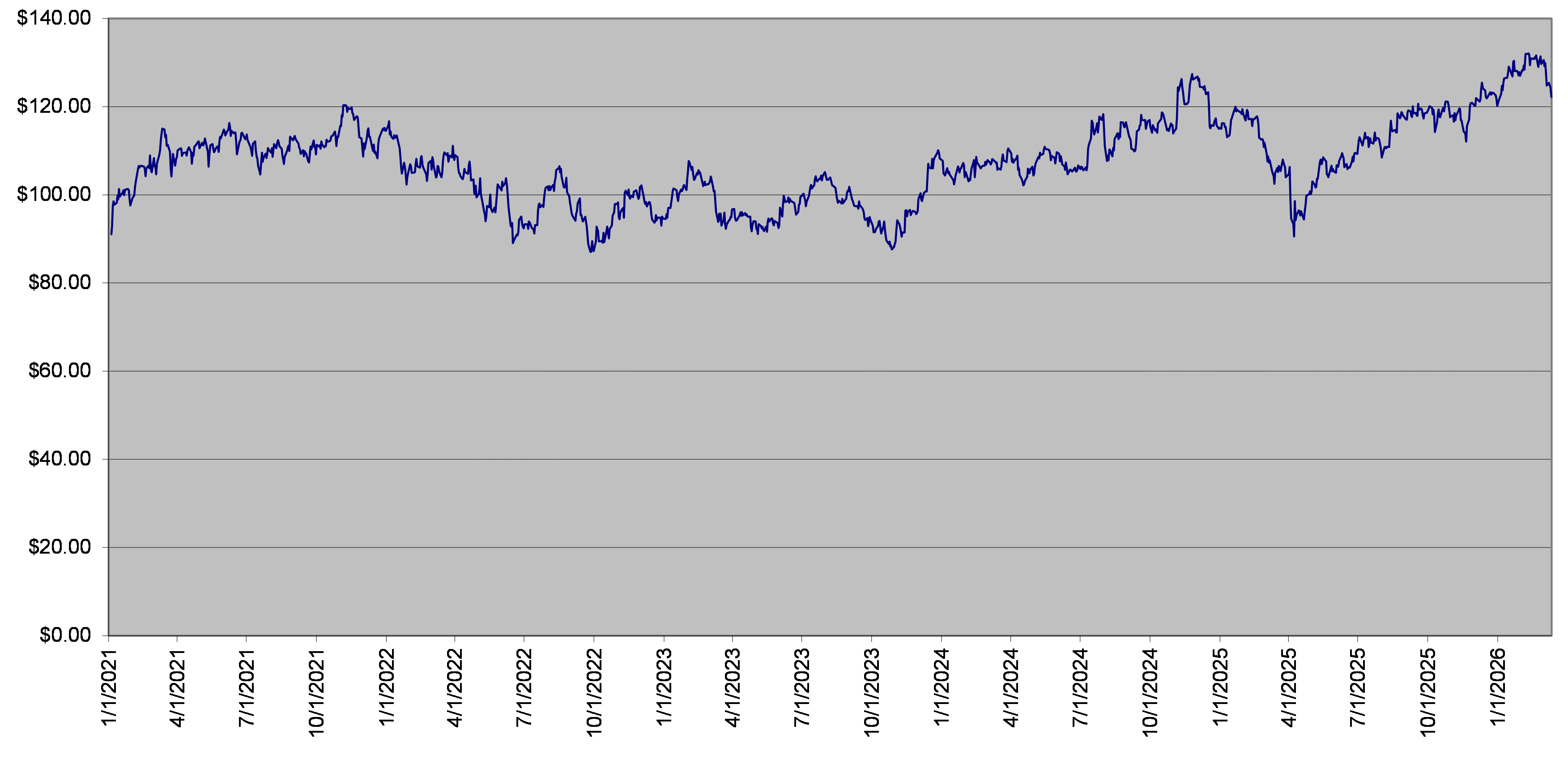 The closing level of the IJR Fund on March 12, 2026 was $122.20. The following graph sets forth the daily closing levels of the underlier for the period noted below. We obtained the historical information presented in this document from Bloomberg Financial Markets, without independent verification. The underlier has at times experienced periods of high volatility. You should not take the historical closing levels of the underlier as an indication of its future performance, and no assurance can be given as to the closing level of the underlier at any time.