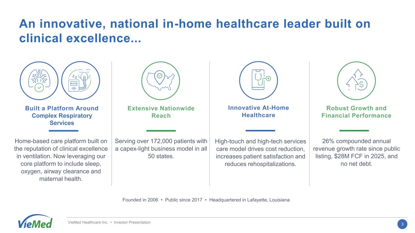 A Rapidly Growing National Leader In Home-Based Clinical Care. Investor Presentation: NASDAQ: VMD March 2026 VieMed Healthcare Inc. • Investor Presentation 1