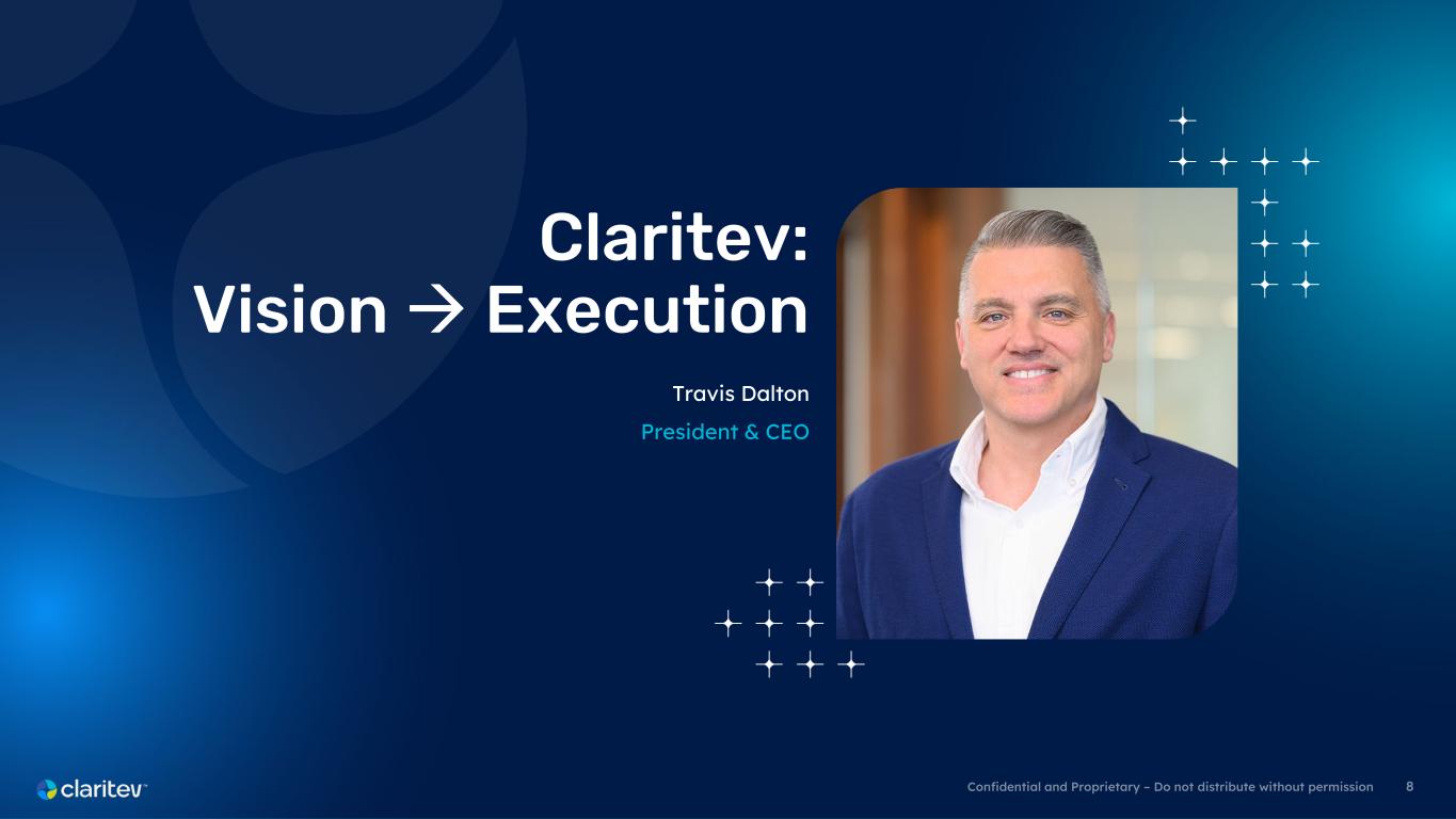 Confidential and Proprietary – Do not distribute without permission 8 Claritev: Vision Execution Travis Dalton President & CEO
