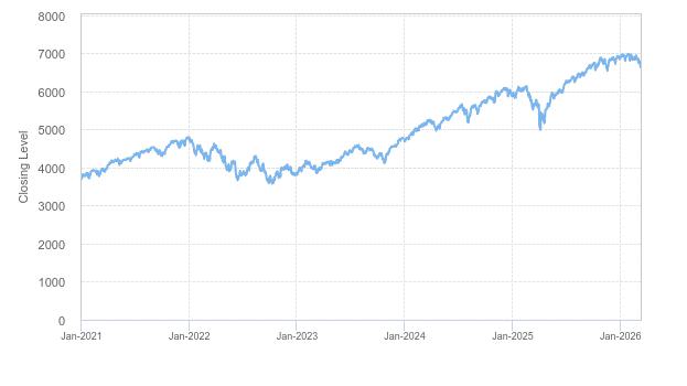 The graph below shows the daily historical closing levels of the SPX Index from January 1, 2021 through March 13, 2026. As a result, the following graph does not reflect the global financial crisis which began in 2008, which had a materially negative impact on the price of most equity securities and, as a result, the level of most equity indices. We obtained the levels in the graph below from Bloomberg Financial Services, without independent verification.