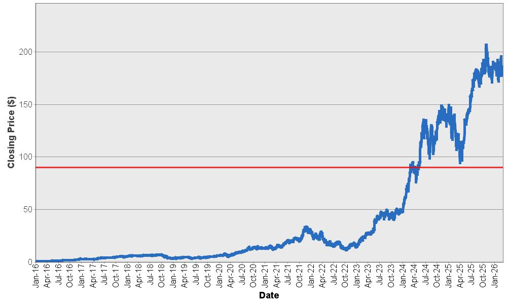 | Common Stock of NVIDIA Corporation – Historical Closing Prices* January 4, 2016 to March 13, 2026 |