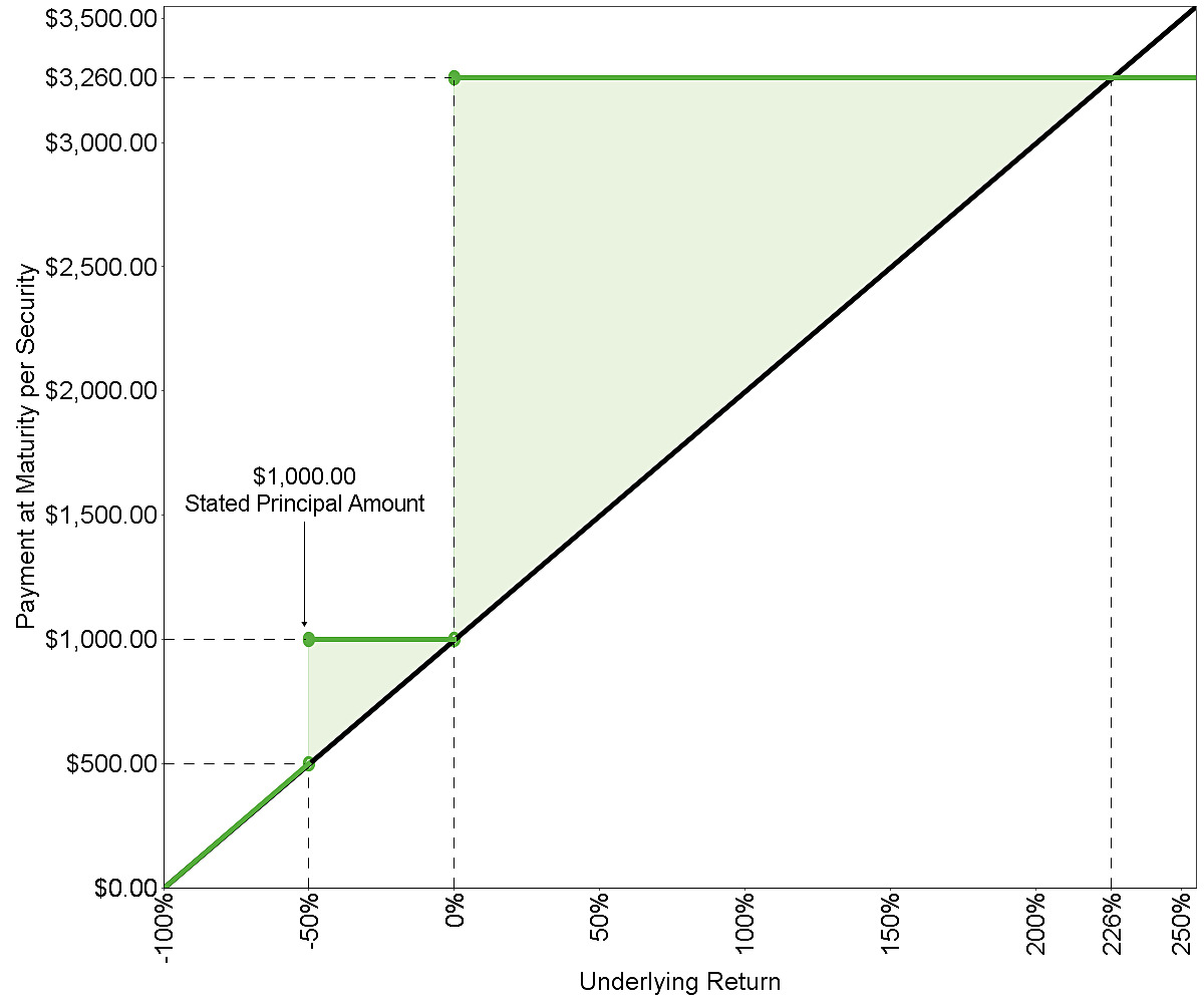 ▪The underlying is highly risky because it may reflect highly leveraged exposure to any decline in the S&P 500 Futures Excess Return Index. The S&P 500 Futures Excess Return Index tracks futures contracts on the S&P 500® Index and is likely to underperform the S&P 500® Index because of an implicit financing cost. In addition, the underlying is subject to a decrement of 6% per annum, which will be a significant drag on its performance. You should carefully review the section “Summary Risk Factors—Risks relating to the S&P 500 Futures 35% Edge Volatility 6% Decrement Index (USD) ER” in this pricing supplement.