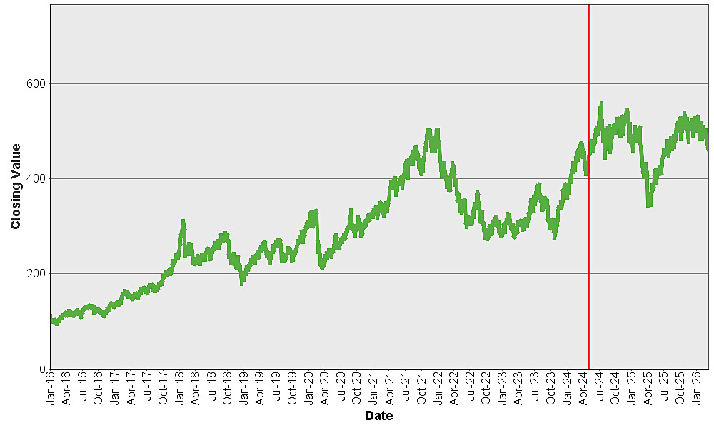 The following graph sets forth a comparison of the historical performance of the S&P 500 Futures Excess Return Index against the historical performance of the S&P 500® Index from January 4, 2016 through March 13, 2026, each normalized to have a closing value of 100.00 on January 4, 2016 to facilitate a comparison. The performance of the S&P 500® Index shown below is its price return performance – i.e., its performance without reflecting dividends. The total return performance of the S&P 500® Index (i.e., its performance reflecting dividends) would be greater than the price return performance shown below.