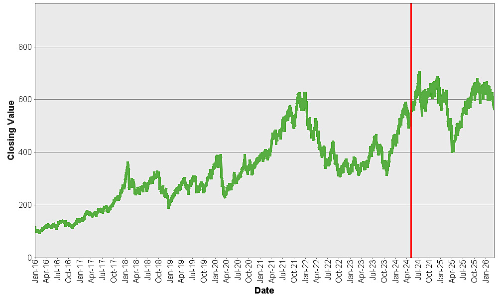 The following graph sets forth a comparison of the historical performance of the S&P 500 Futures Excess Return Index against the historical performance of the S&P 500® Index from January 4, 2016 through March 13, 2026, each normalized to have a closing value of 100.00 on January 4, 2016 to facilitate a comparison. The performance of the S&P 500® Index shown below is its price return performance – i.e., its performance without reflecting dividends. The total return performance of the S&P 500® Index (i.e., its performance reflecting dividends) would be greater than the price return performance shown below.