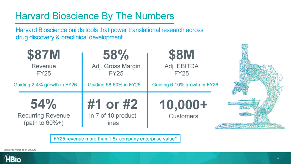 NASDAQ: HBIO Harvard Bioscience Investor Overview March 202 6