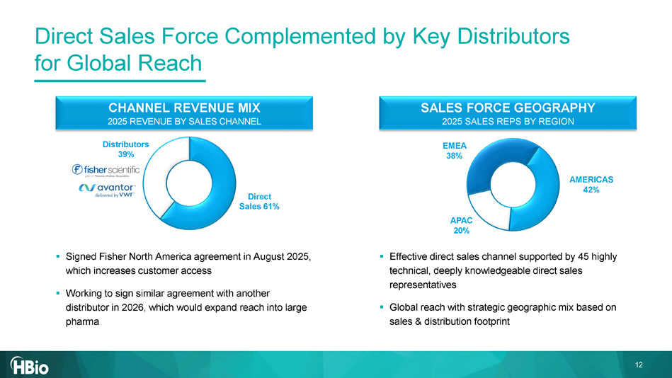 CHANNEL REVENUE MIX 2025 REVENUE BY SALES CHANNEL Direct Sales 6 1 % Distributors 3 9 % EMEA 38 % APAC 20 % SALES FORCE GEOGRAPHY 2025 SALES REPS BY REGION 12 Direct Sales Force Complemented by Key Distributors for Global Reach ▪ Effective direct sales channel supported by 45 highly technical, deeply knowledgeable direct sales representatives ▪ Global reach with strategic geographic mix based on sales & distribution footprint ▪ Signed Fisher North America agreement in August 2025, which increases customer access ▪ Working to sign similar agreement with another distributor in 2026, which would expand reach into large pharma AMERICAS 42%