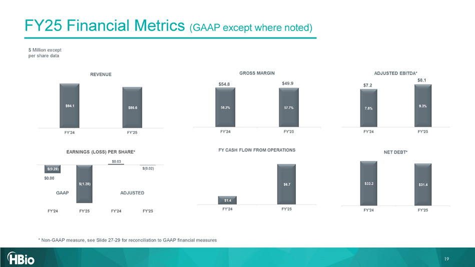 $ Million except per share data 18 * Non - GAAP measure, see Slide 27 - 29 for reconciliation to GAAP financial measures 4Q25 Financial Metrics (GAAP except where noted) GAAP ADJUSTED $0.00 $0.00 $14.0 $14.2 $3.0 $3.8