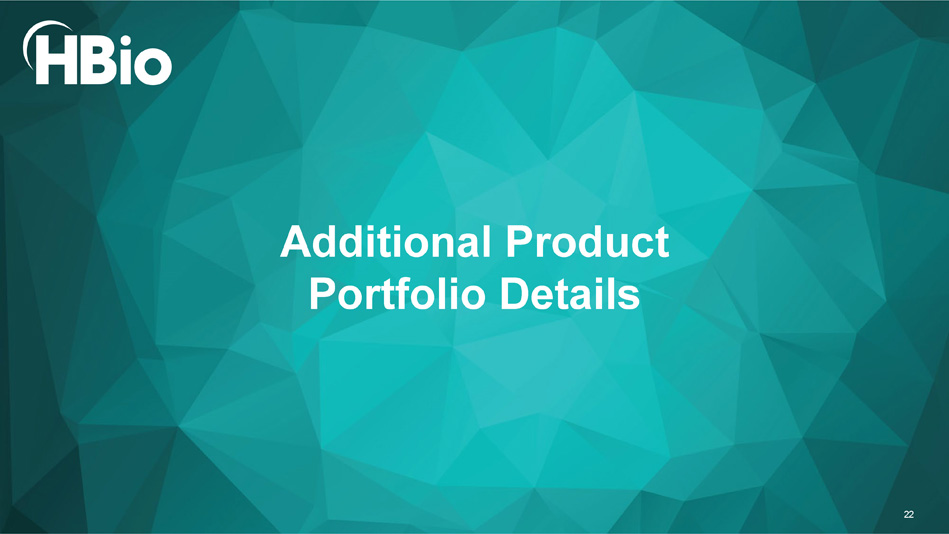 Investment Highlights: Strong Foundation Poised for Growth Market Leadership with Structural Tailwinds #1 preclinical telemetry franchise for 35+ years, & early organoid leadership Blue - Chip Customer Base Selling to diverse, blue - chip customer base on a global scale Recurring Revenue, High Margins & Positive Cash Flow Software, consumables, installed base drive visibility & margin expansion on products with high barrier to entry, generating increased cash for the Company Differentiated New Product Innovation (NPI) Pipeline MeshMEA , SoHo , Incub8 extend leadership into high - growth adjacencies New Management & BoD Refocused management team with deep experience supported by technically deep employee base & refreshed board of directors Strengthened Balance Sheet & Streamlined Operations Refinancing & manufacturing consolidation unlock operating leverage 21