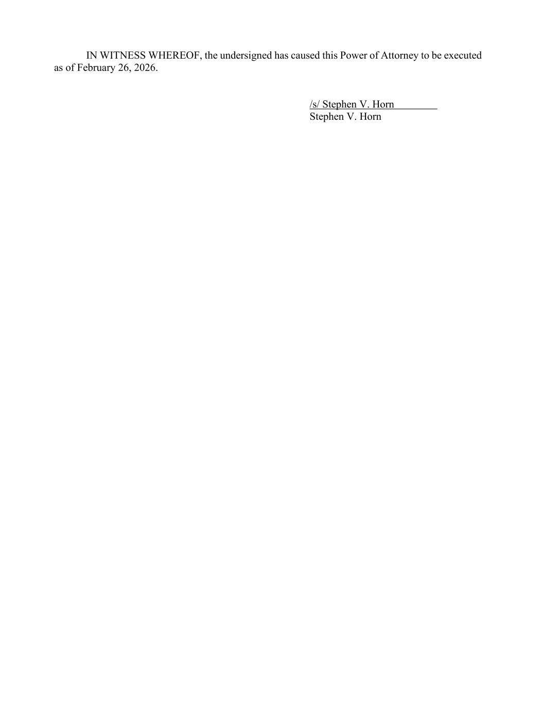IN WITNESS WHEREOF, the undersigned has caused this Power of Attorney to be executed as of February 26, 2026. /s/ Stephen V. Horn Stephen V. Horn