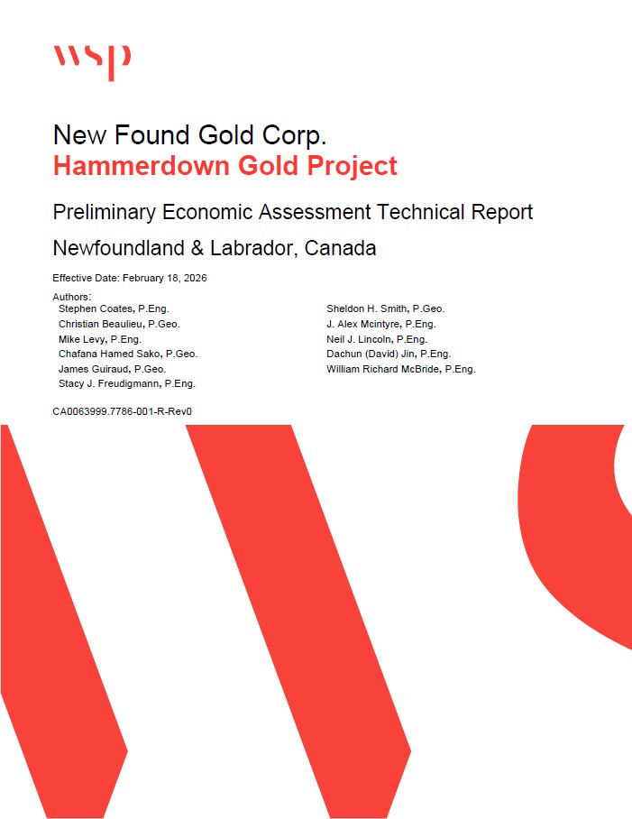 • This certificate applies to the technical report entitled "New Found Gold Corp. Hammerdown Gold Project Preliminary Economic Assessment Technical Report, Newfoundland and Labrador, Canada", with an effective date of February 18, 2026 (the "Technical Report").