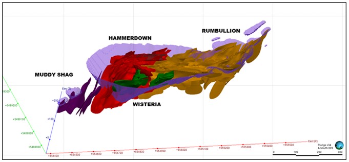 4.1 to 4.5, 5, 6, 7.1, 7.2, 8.1, 10.1, 10.2, 11.0, 11.1.1 to 11.1.6, 12.1, 14.0, 14.1, 23, 25.1.1, and 26.1.1, and relevant sub-sections pertaining to the Hammerdown deposit of Section 1. |