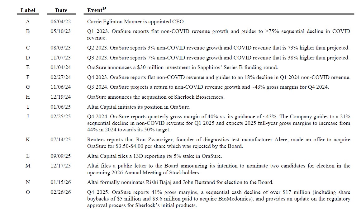 Altai Capital began conversations with OraSure regarding Board representation in November 2024. Tellingly, Ms. Aspinall resigned from the Board on October 28, 2025, after our ongoing discussions made clear that we would formally seek to have her replaced at the upcoming Annual Meeting if we could not reach an agreement. Five of the six Board members who approved the Sherlock acquisition, including Ms. Eglinton Manner, remain on the Board today. They continue to bear responsibility for their oversight (or lack thereof) in the Sherlock acquisition process and should be held accountable.