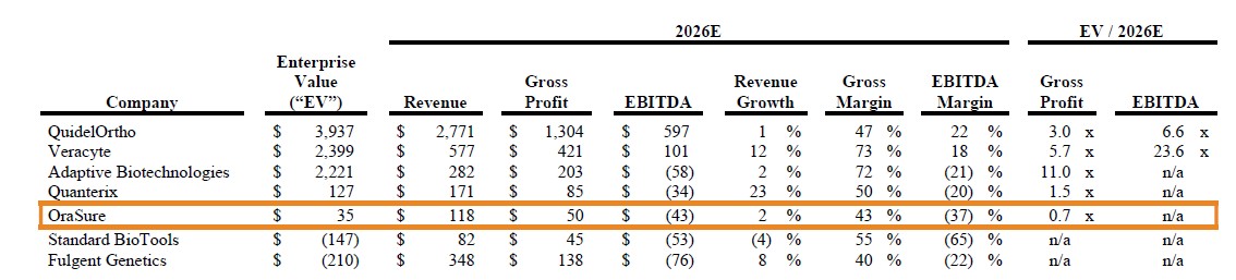 Against this backdrop, OraSure faces three realistic paths: (i) grow revenue through organic investment and better use of its capacity, (ii) acquire established businesses at fair prices that bring additional volume, enabling the Company to rationalize costs and reach profitability, or (iii) sell the business to a larger acquirer that can provide the scale and distribution OraSure needs. Given the Company’s track record with options (i) and (ii), we believe option (iii) deserves serious and immediate evaluation.