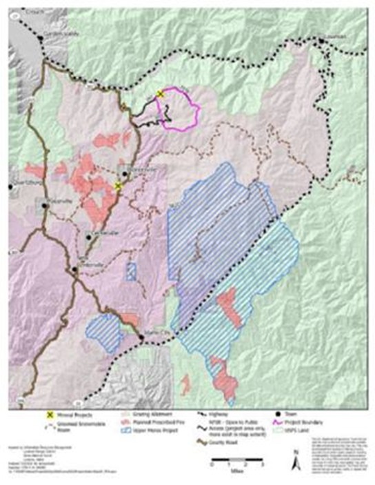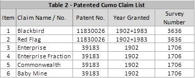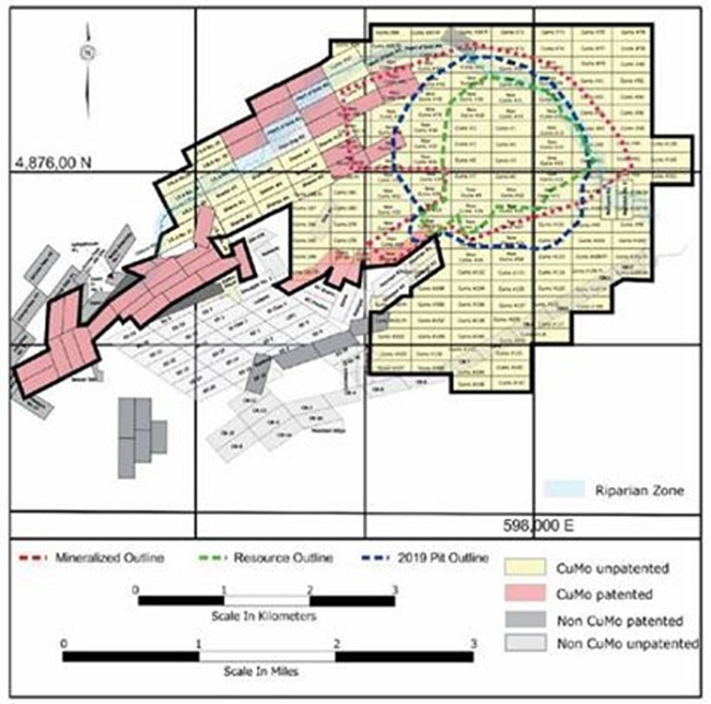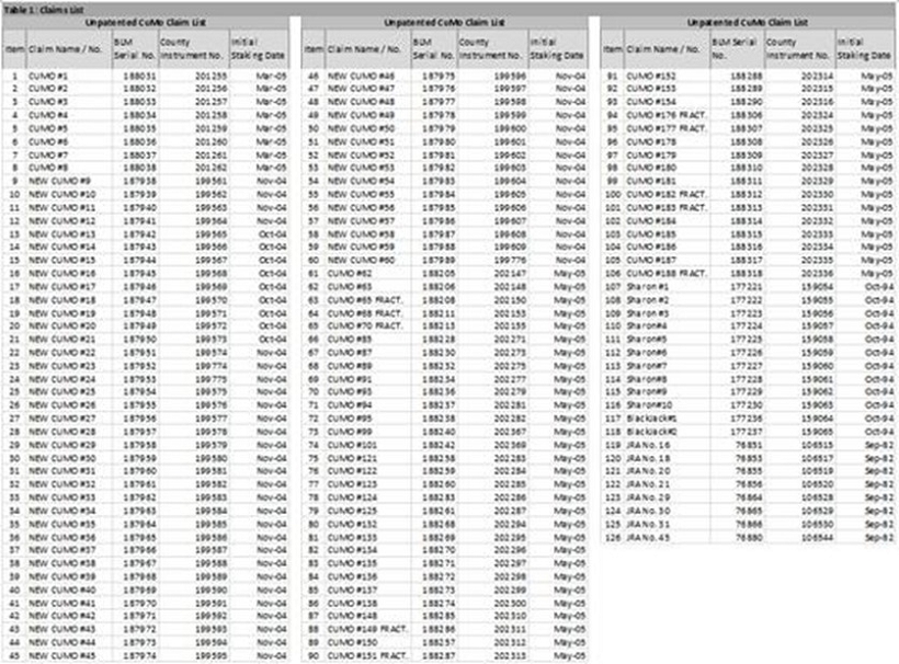 The CuMo Project currently consists of one hundred and twenty-six (126) federal unpatented lode mining claims, and six (6) patented mining claims. In total, the project comprises approximately 2,640 acres. The unpatented lode mining claims and patented claims are situated in an unorganized mining district, in Boise County, Idaho, spanning Sections in Township 7N and 8N, Range 5E and 6E, Boise Meridian.