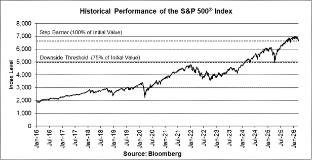 The graph below illustrates the daily performance of the S&P 500® Index from January 4, 2016 through March 13, 2026, based on information from Bloomberg, without independent verification. The closing level of the S&P 500® Index on March 13, 2026 was 6,632.19. We obtained the closing levels of the S&P 500® Index above and below from Bloomberg, without independent verification.