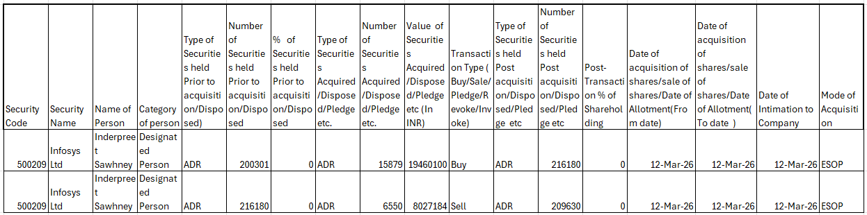 In compliance with the foregoing, the Company has disclosed the details of Securities acquired by the KMPs to the Stock Exchanges. Further, pursuant to SEC regulations, we hereby submit the following information pertaining to the securities acquired by KMPs of the Company as below: