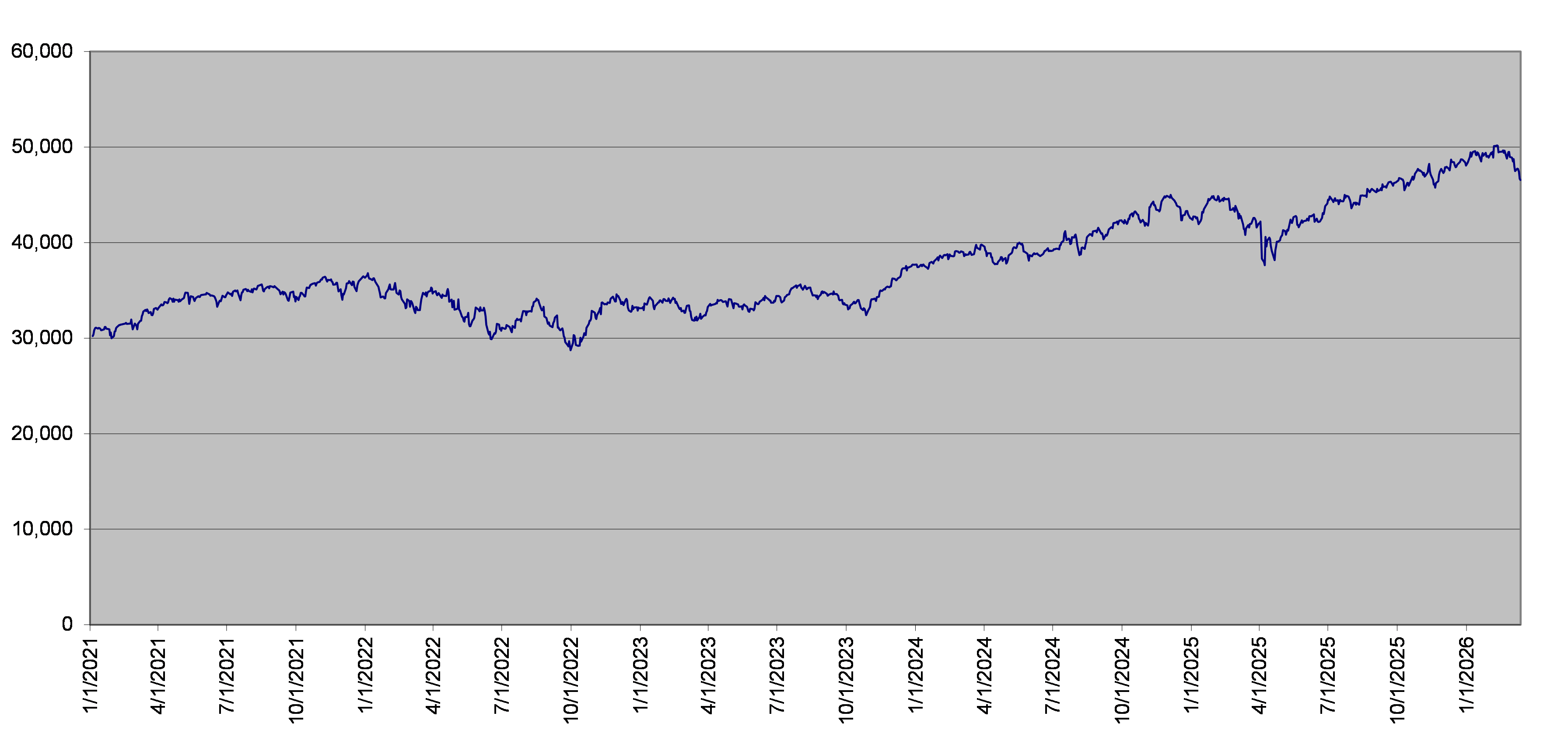 INDU Index Daily Closing Levels January 1, 2021 to March 13, 2026 |