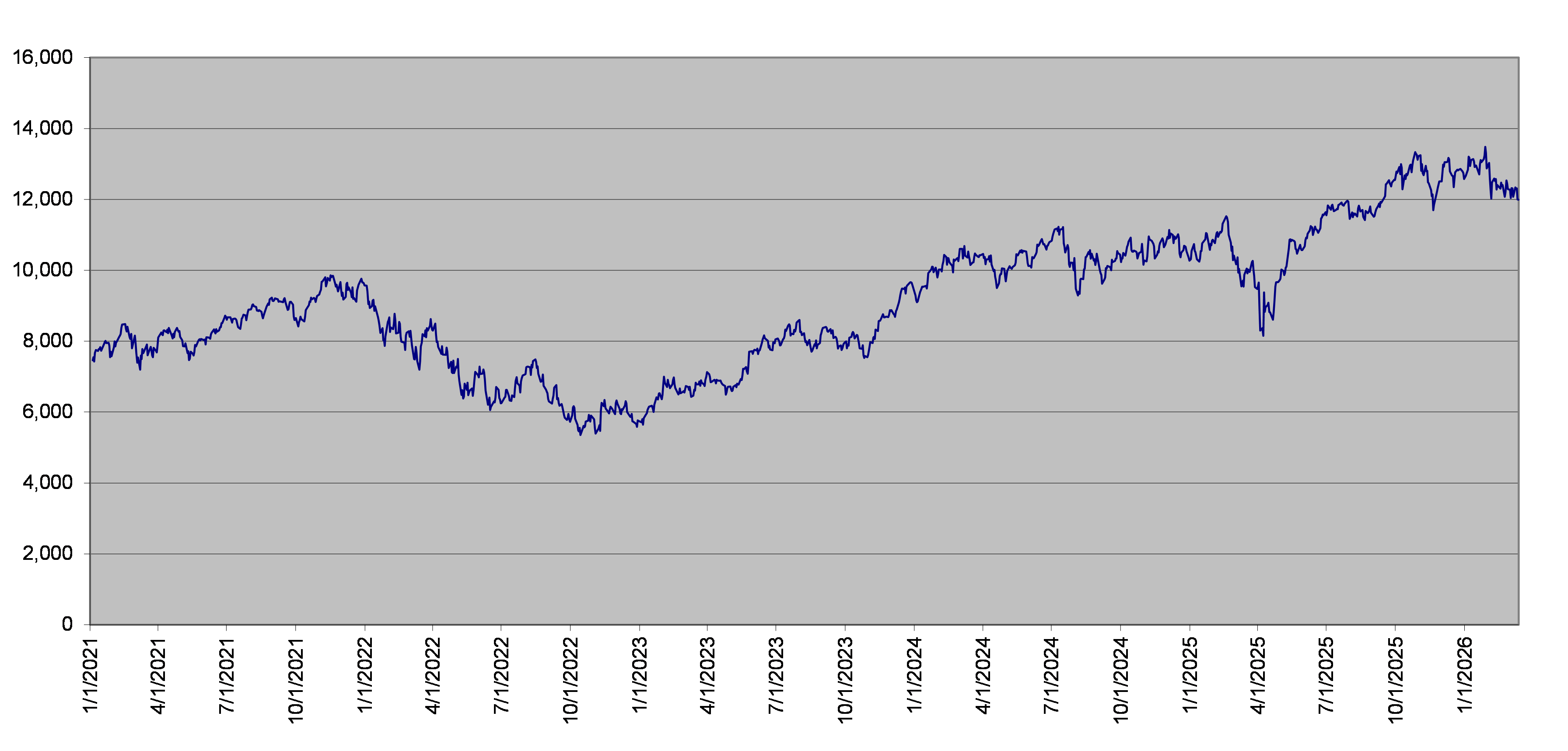 NDXT Index Daily Closing Levels January 1, 2021 to March 13, 2026 |