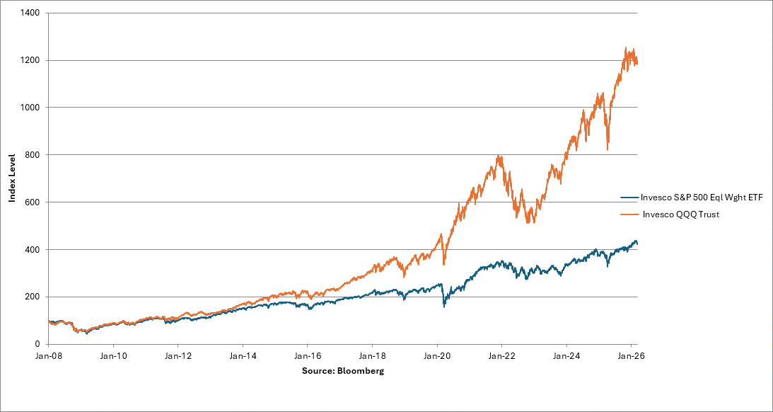 The graph below illustrates the performance of the Invesco QQQ TrustSM, Series 1 from January 1, 2008 through March 13, 2026, based on information from Bloomberg.