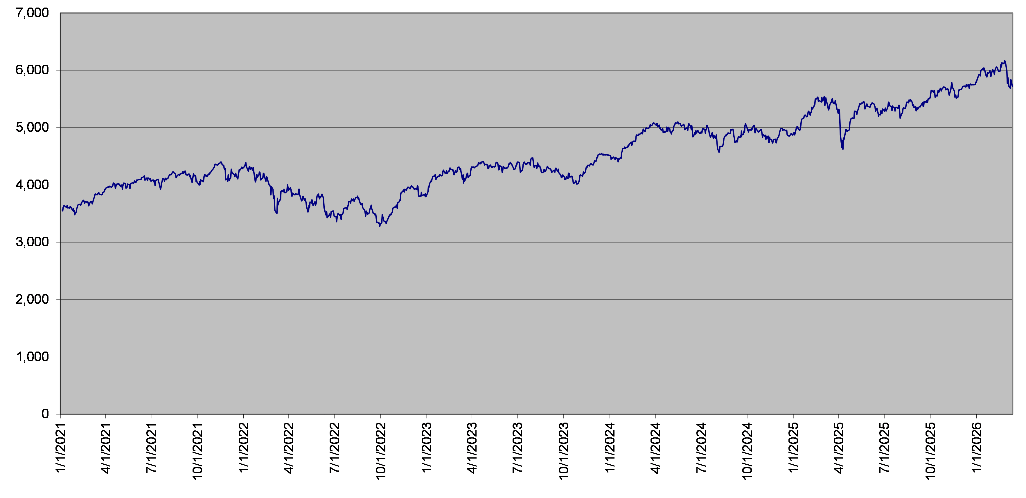 The closing level of the underlier on March 13, 2026 was 5,716.61. The following graph sets forth the daily closing levels of the underlier for the period noted below. We obtained the historical information presented in this document from Bloomberg Financial Markets, without independent verification. The underlier has at times experienced periods of high volatility. You should not take the historical closing levels of the underlier as an indication of its future performance, and no assurance can be given as to the closing level of the underlier at any time.