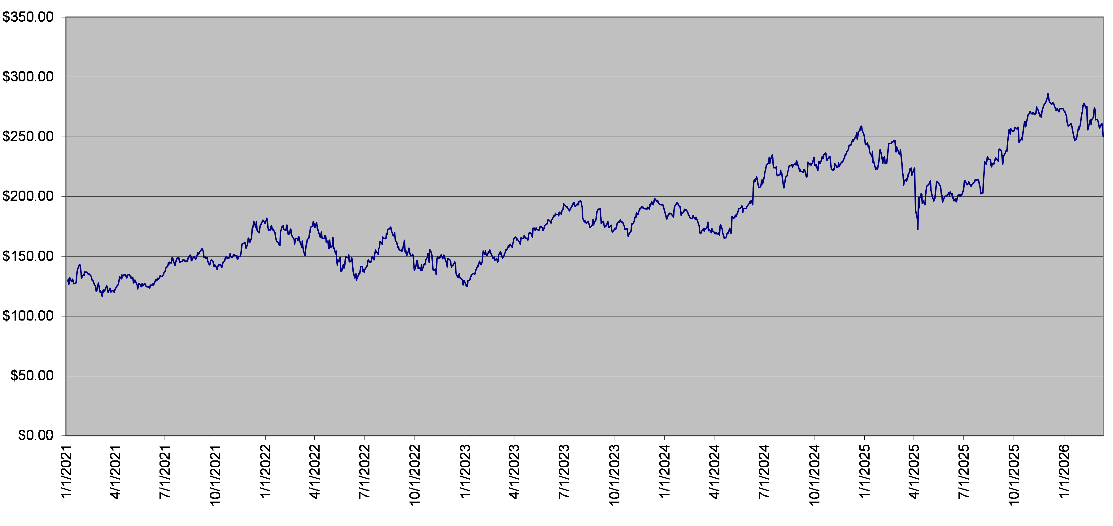The closing level of the VRT Stock on March 13, 2026 was $258.88. The following graph sets forth the daily closing levels of the underlier for the period noted below. We obtained the historical information presented in this document from Bloomberg Financial Markets, without independent verification. The underlier has at times experienced periods of high volatility. You should not take the historical closing levels of the underlier as an indication of its future performance, and no assurance can be given as to the closing level of the underlier at any time.