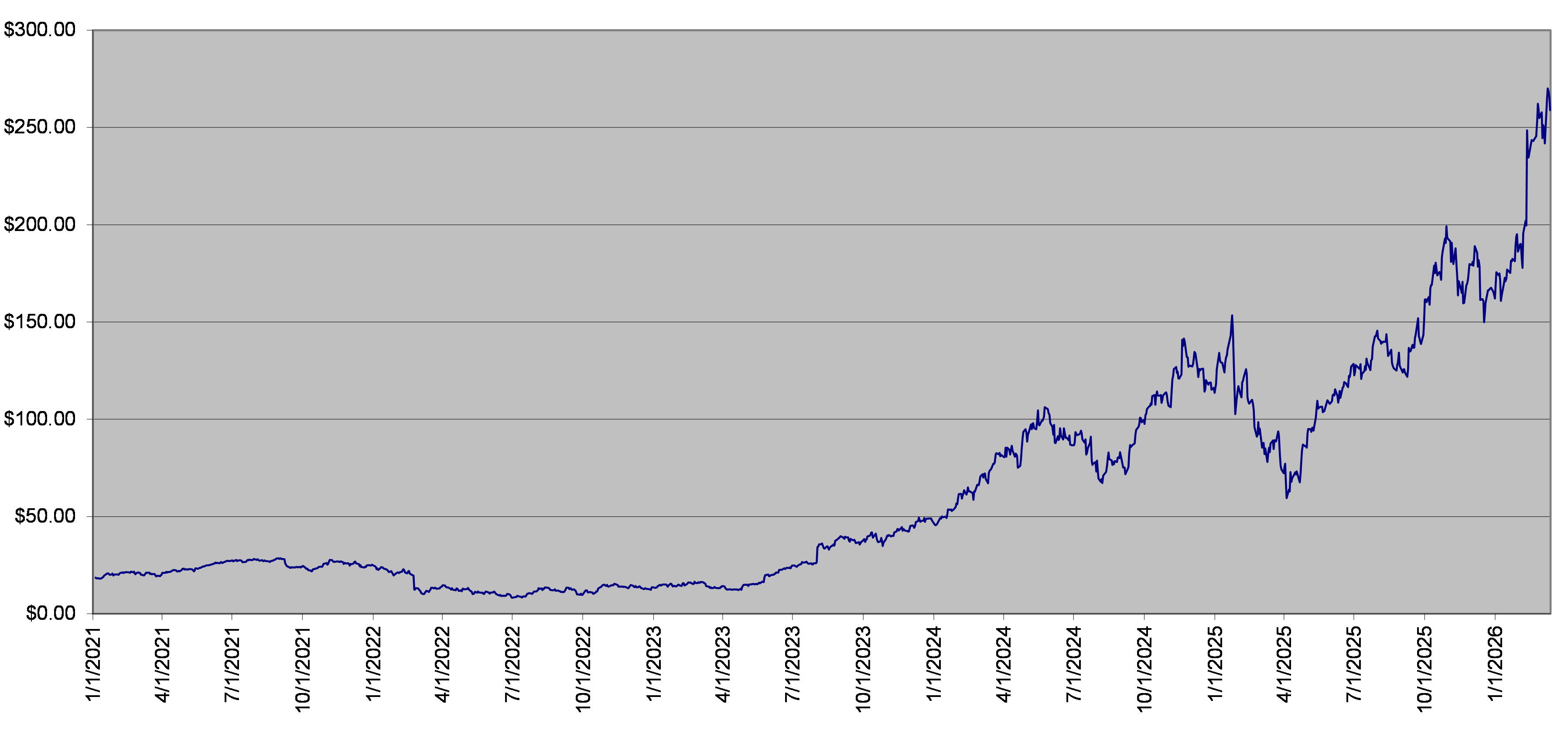 MU Stock Daily Closing Levels January 1, 2021 to March 13, 2026 |