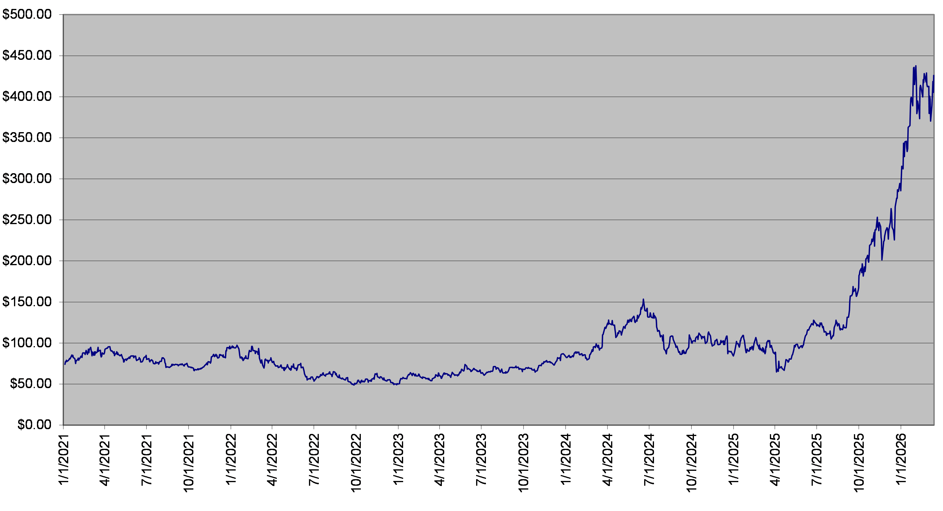 The closing level of the underlier on March 13, 2026 was $426.13. The following graph sets forth the daily closing levels of the underlier for the period noted below. We obtained the historical information presented in this document from Bloomberg Financial Markets, without independent verification. The underlier has at times experienced periods of high volatility. You should not take the historical closing levels of the underlier as an indication of its future performance, and no assurance can be given as to the closing level of the underlier at any time.