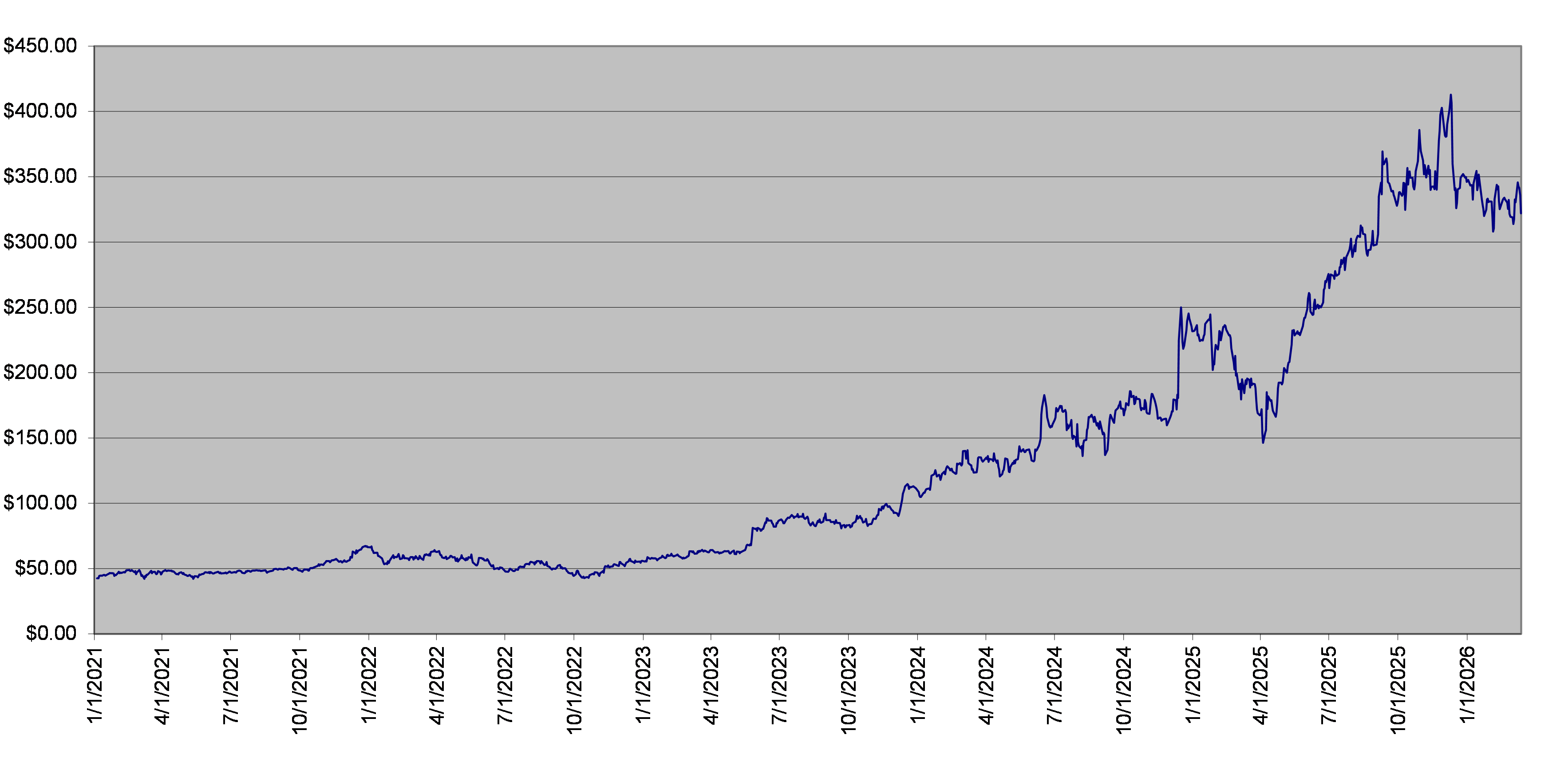 AVGO Stock Daily Closing Levels January 1, 2021 to March 13, 2026 |