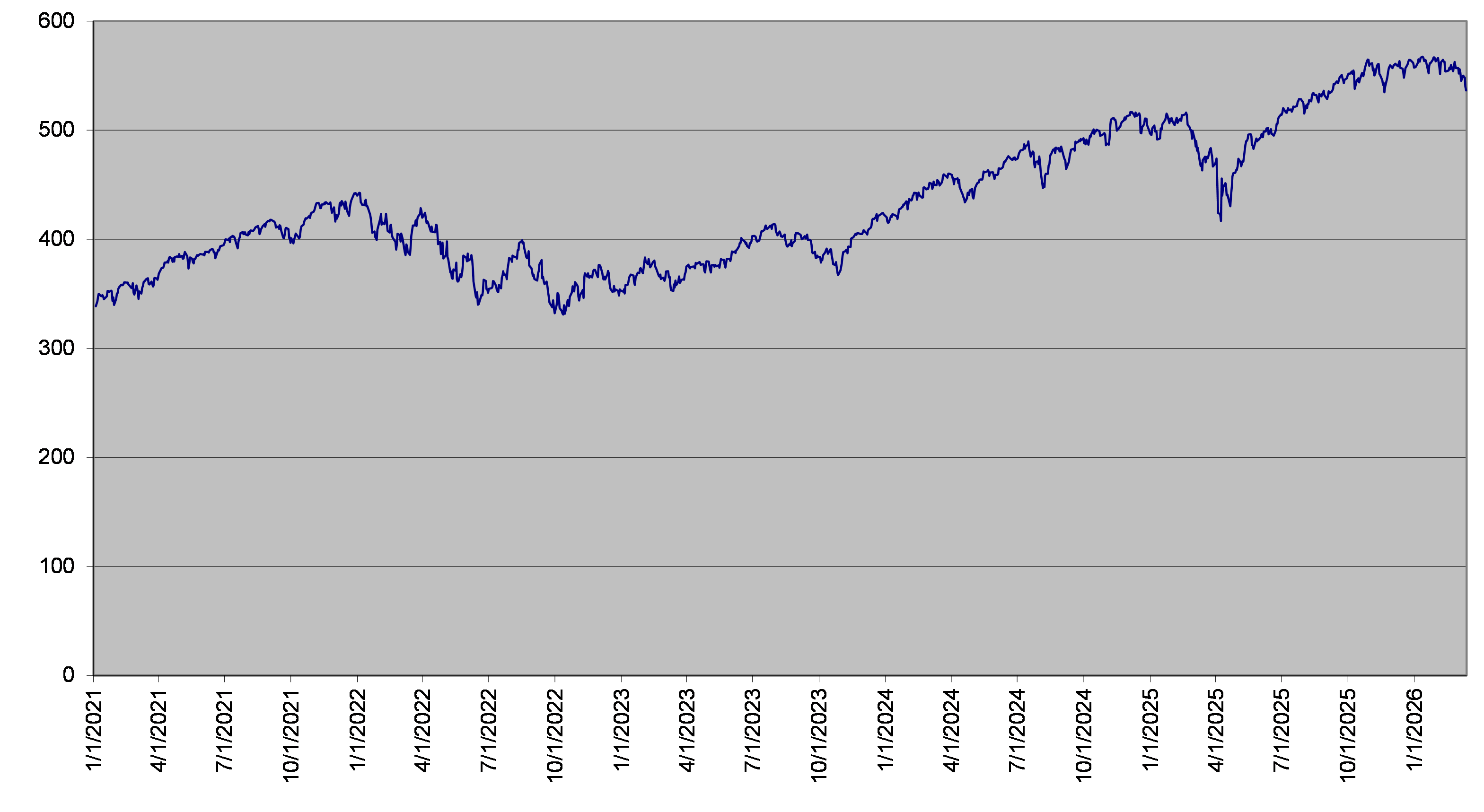 The closing level of the underlier on March 13, 2026 was 536.58. The following graph sets forth the daily closing levels of the underlier for the period noted below. We obtained the historical information presented in this document from Bloomberg Financial Markets, without independent verification. The underlier has at times experienced periods of high volatility. You should not take the historical closing levels of the underlier as an indication of its future performance, and no assurance can be given as to the closing level of the underlier at any time.