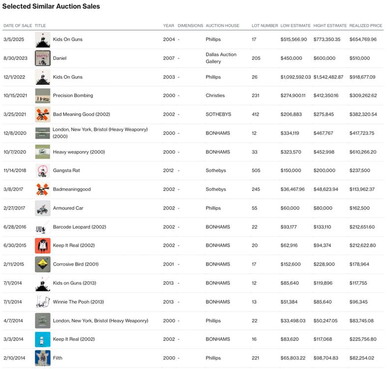 Dollar amounts throughout this offering circular have been rounded to the nearest whole dollar and information such as auction sale prices, that were originally denominated in a currency other than the U.S. dollar have been converted into U.S. dollars at the prevailing exchange rate on the applicable date of such sale transaction per publicly available data.