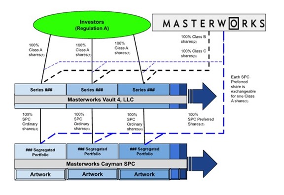 Masterworks Vault 4, LLC, which we refer to as “we,” “us,” “our,” “Masterworks Vault 4” or the “Company,” is a newly organized Delaware protected series limited liability company that has been formed to facilitate investment in individual works of art (“Artworks”) that will be beneficially owned by individual series of the Company. Each individual series will indirectly hold title to the specific Artwork that it acquires through a segregated portfolio of a Cayman Islands segregated portfolio company, Masterworks Cayman, SPC. We are offering Class A shares representing Class A limited liability company interests of each of the series of the Company in the “Series Offering Table” beginning on page iv of this Offering Circular. There is no minimum number of Class A shares or dollar amount that needs to be sold of a series as a condition of any closing of the offering of a series. If any of the Class A shares offered by a series remain unsold as of the final closing of the offering of such series, such unsold Class A shares of such series shall be issued to Masterworks, in full satisfaction of its advance and the Expense Allocation as described in this Offering Circular. Subscriptions, once received, are irrevocable by investors.