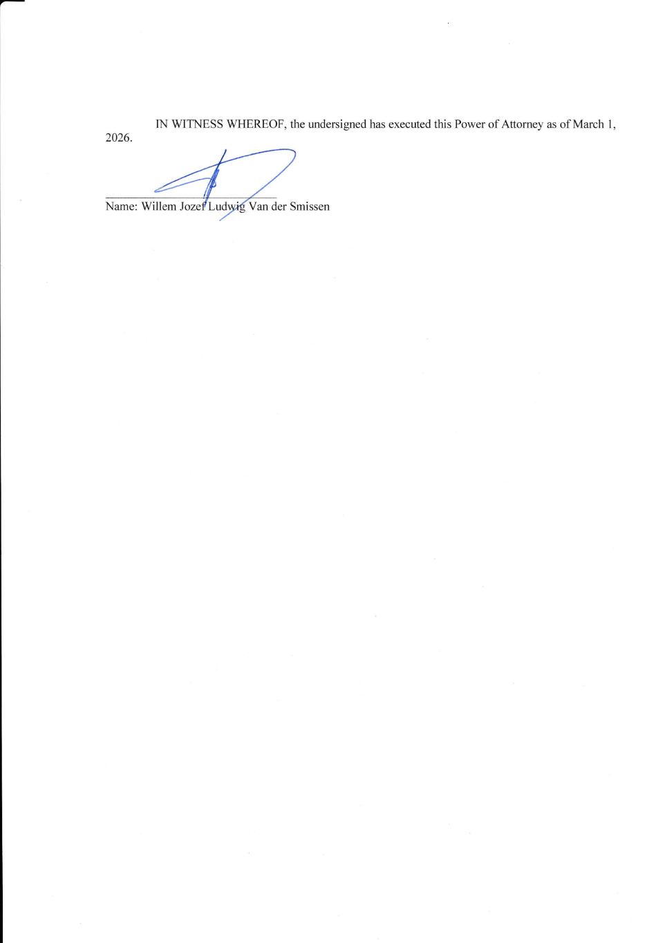 2026. Name: IN WITNE,SS WHEREOF, the undersigned has executed this Power o1'Attornel as of N{arch 1, an der Smissen
