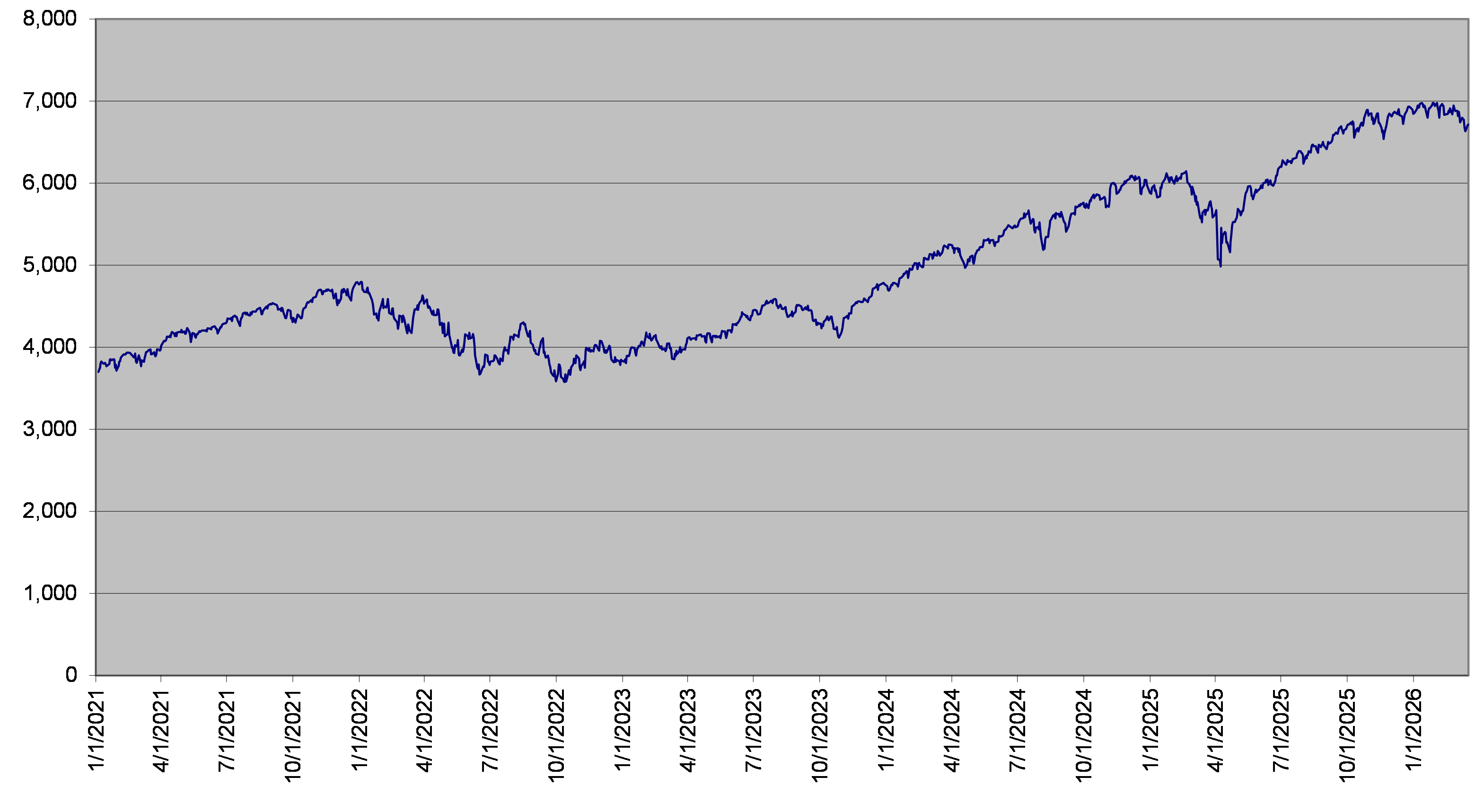 S&P 500® Index Daily Closing Levels January 1, 2021 to March 17, 2026 |