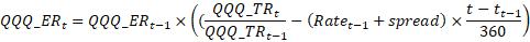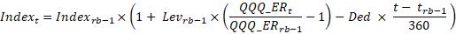Specifically, on each Index Calculation Day, the level of the QQQ Position, represented by the MQROQQE1, is calculated by adjusting the level of the QQQ Position as of the immediately preceding Index Calculation Day to reflect the percentage change of the MQROQQTU from the immediately preceding Index Calculation Day net of the deduction of the notional financing cost that has accrued since the immediately preceding Index Calculation Day, calculated on the basis of the actual number of calendar days elapsed and a 360 day year (i.e., ACT/360 basis). Expressed as a formula: