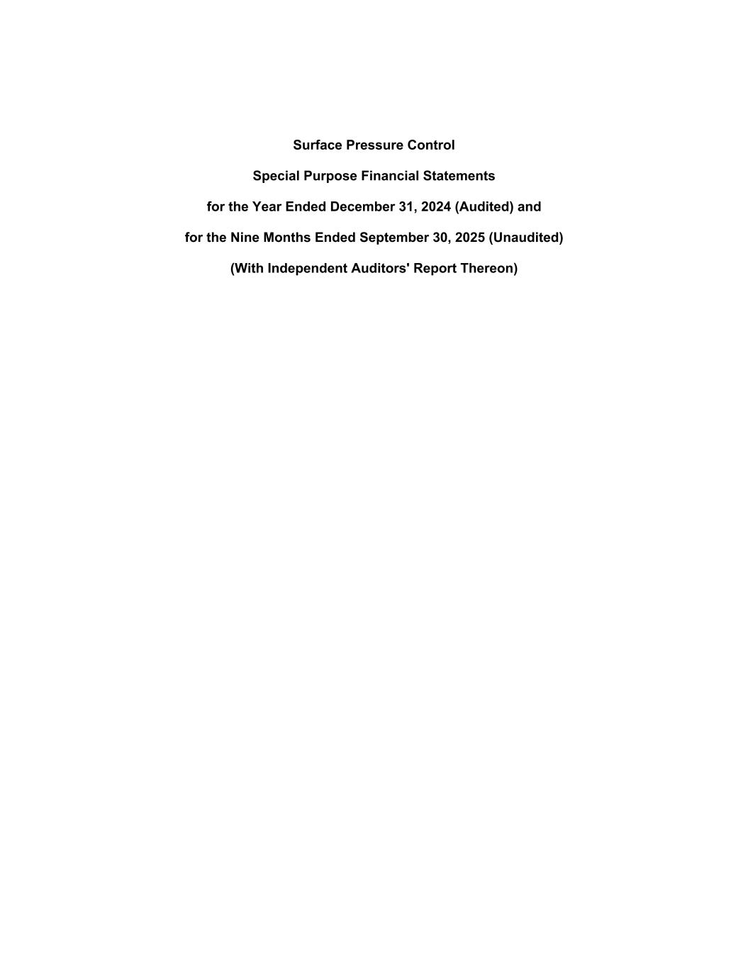 Surface Pressure Control Special Purpose Financial Statements for the Year Ended December 31, 2024 (Audited) and for the Nine Months Ended September 30, 2025 (Unaudited) (With Independent Auditors' Report Thereon)
