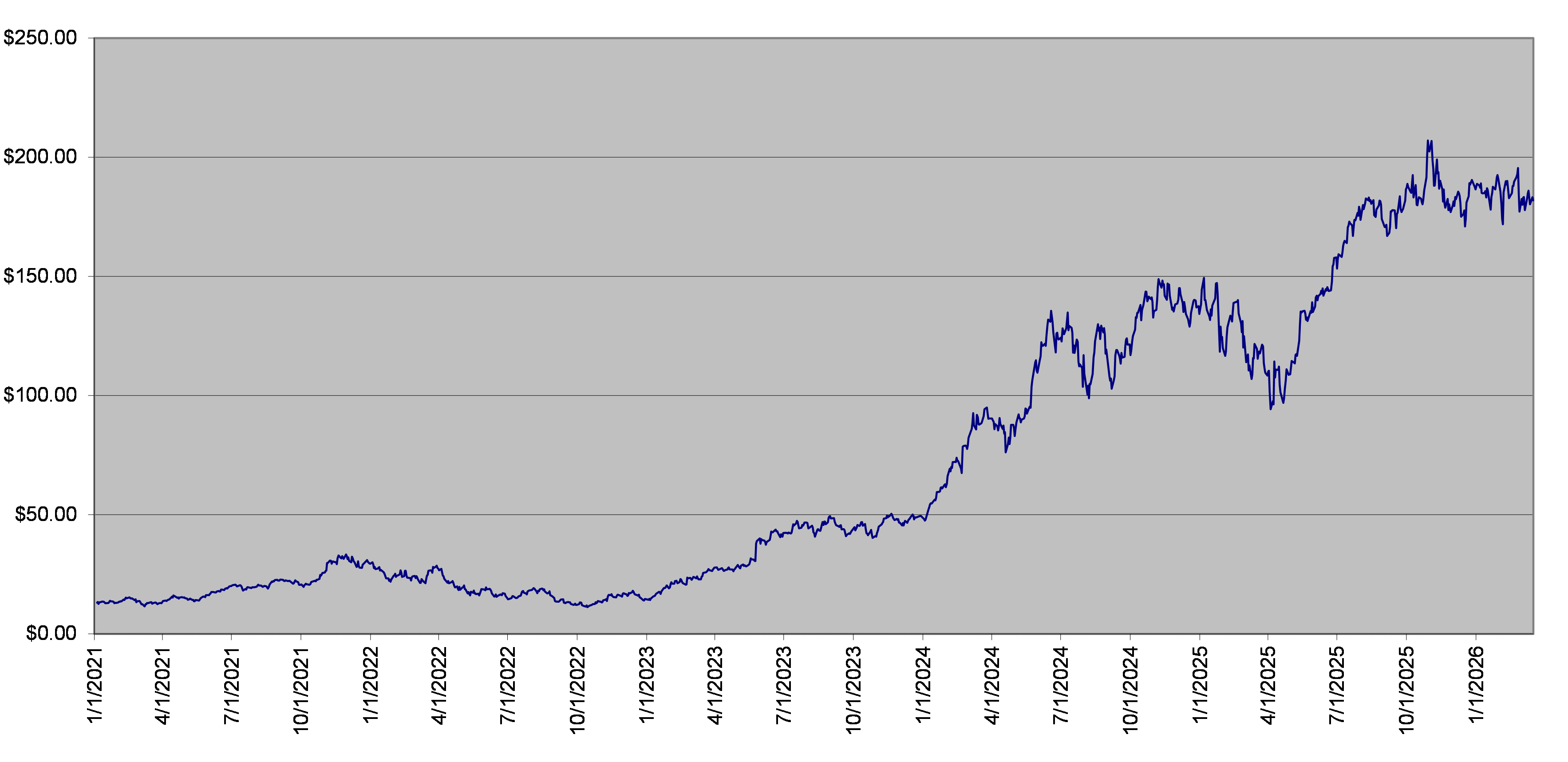 GOOG Stock Daily Closing Levels January 1, 2021 to March 17, 2026 |