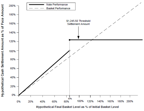 ●if the basket return is greater than or equal to -15.00% (the final basket level is greater than or equal to 85.00% of the initial basket level), the threshold settlement amount of $1,245.50; or