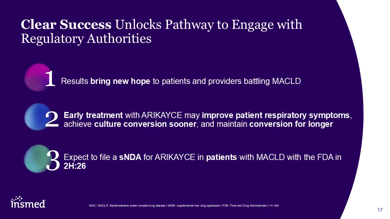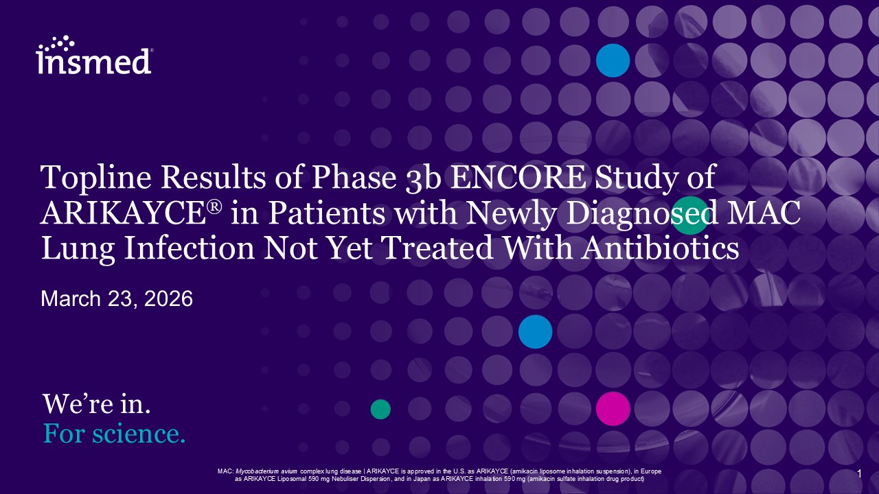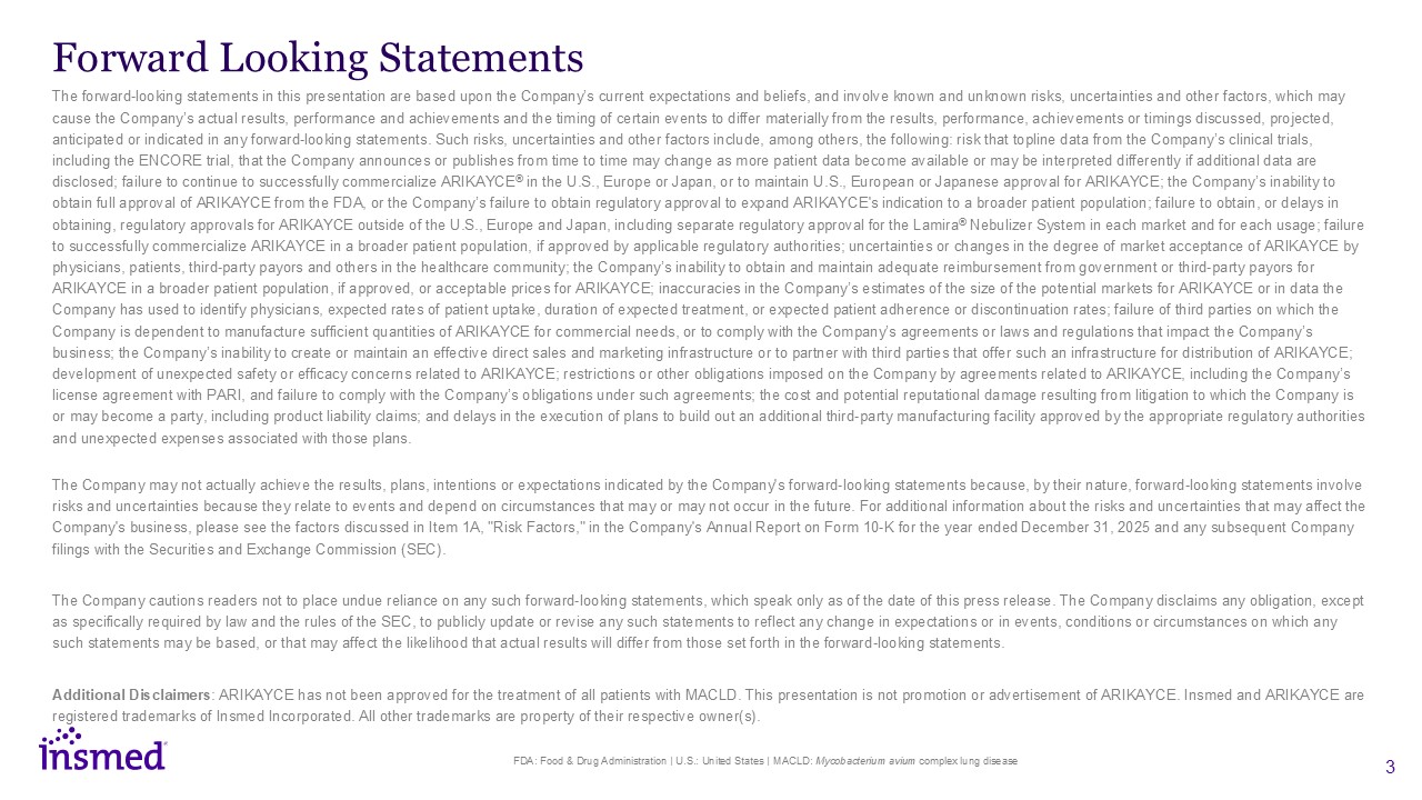 actual results will differ from those set forth in the forward-looking statements. Additional Disclaimers: ARIKAYCE has not been approved for the treatment of all patients with MACLD. This presentation is not promotion or advertisement of