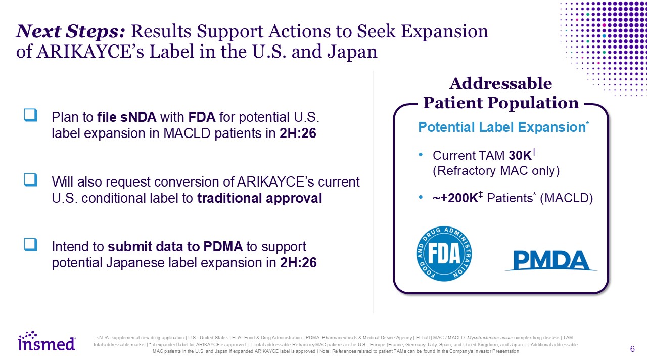 data are disclosed; failure to continue to successfully commercialize ARIKAYCE® in the U.S., Europe or Japan, or to maintain U.S., European or Japanese approval for ARIKAYCE; the Company’s inability to obtain full approval of ARIKAYCE from
