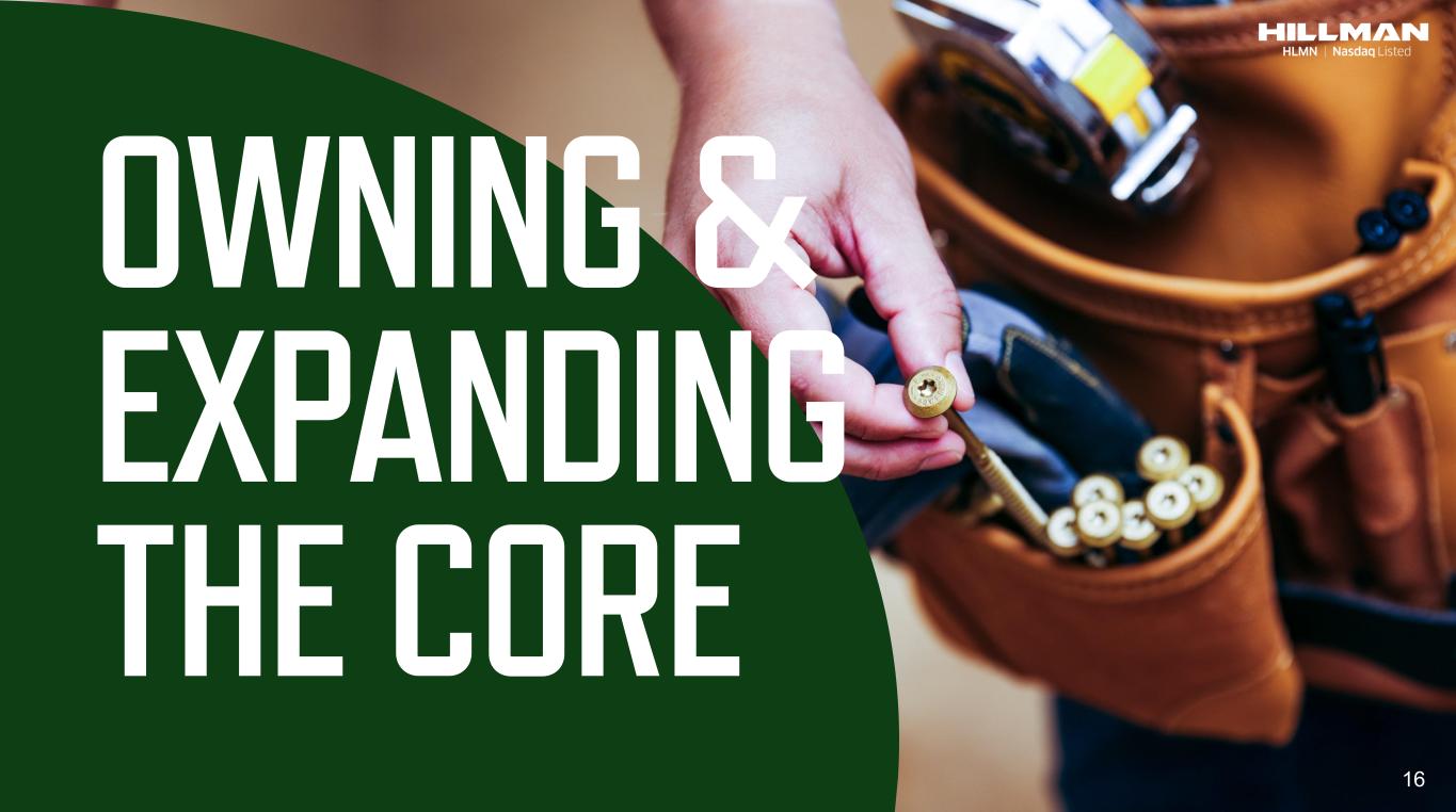 #26673F #102F93 #279A56 #4EA72E#239FFF #0E2841 #279A56 #4EA72E Hillman Share ~3% ~$9.5B Addressable Market Multi-lane growth strategy to pursue organic and bolt-on acquisition opportunities Strong Retail Position and Growing Pro Presence text Retail Industrial MRO Growing Pro with Partners Master Distributor Model Expand share-of-wallet with key retail customers moving into Pro Direct and specialty distribution model serving the complex needs of industrial maintenance and repair end markets Pro Distribution Expanding in Distribution Deepen relationships with specialty and lumber & building material distributors 15 Hillman Share ~2%~$2B Addressable Market Hillman Share ~20% ~$6.5B Addressable Market Each Hillman addressable market based on current capabilities Pro and Industrial Distribution Note: Hillman share figures based on full year 2025 revenues. Addressable markets based on third-party consulting analysis and Hillman’s current capabilities.