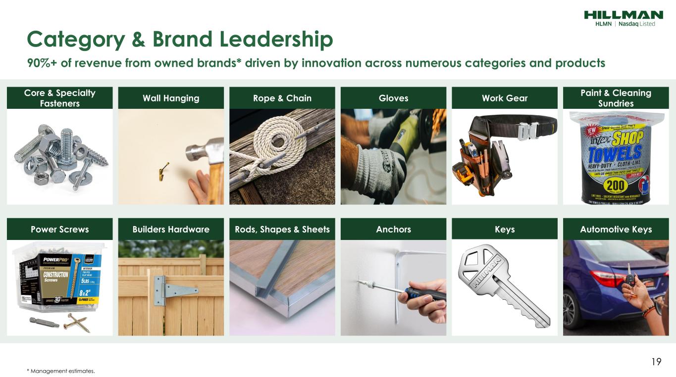 #26673F #102F93 #279A56 #4EA72E#239FFF #0E2841 #279A56 #4EA72E Dominating the fastening & hardware categories A League of Our Own Dominant Scale: Extensive purchasing power, product breadth, and service infrastructure The Only Comprehensive Solution: The go-to category leader for retailers seeking a full-service partner ~$1.6B 2025 Revenue #1 Position Across Primary Categories* 90%+ Owned Brands* 25+ Years Top Customer Avg. Relationship ~99% Customer Retention of Core Programs* ~98% Avg. Order Fill Rate* ~111,000 SKUs Managed ~29,000 Direct Ship Retail Locations ~31,500 Kiosks in Retail Locations Scale Creates Advantage: Our size creates structural advantages that are very hard for others to replicate 18 text * Management estimates.