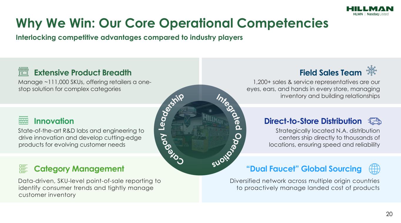 #26673F #102F93 #279A56 #4EA72E#239FFF #0E2841 #279A56 #4EA72E 90%+ of revenue from owned brands* driven by innovation across numerous categories and products Category & Brand Leadership 19 text Core & Specialty Fasteners Work GearRope & Chain Anchors Gloves KeysBuilders Hardware Wall Hanging Paint & Cleaning Sundries Rods, Shapes & Sheets Automotive KeysPower Screws * Management estimates.