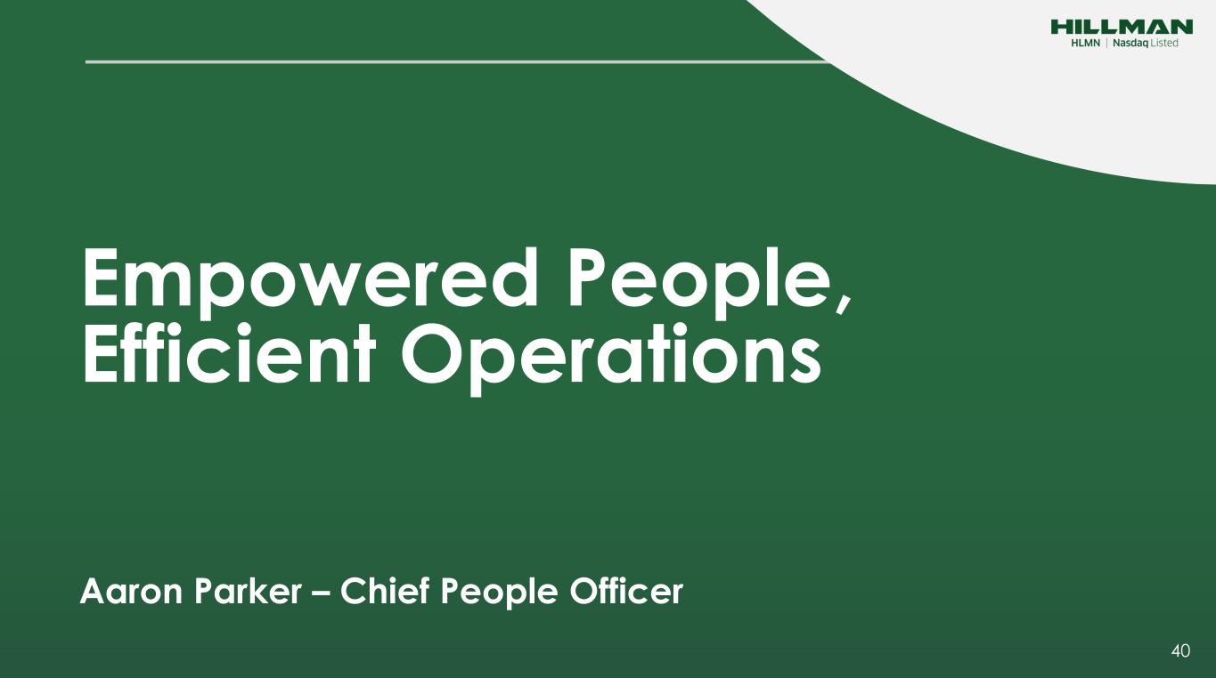 #26673F #102F93 #279A56 #4EA72E#239FFF #0E2841 #279A56 #4EA72E Empowered People, Efficient Operations Aaron Parker – Chief People Officer 40 text