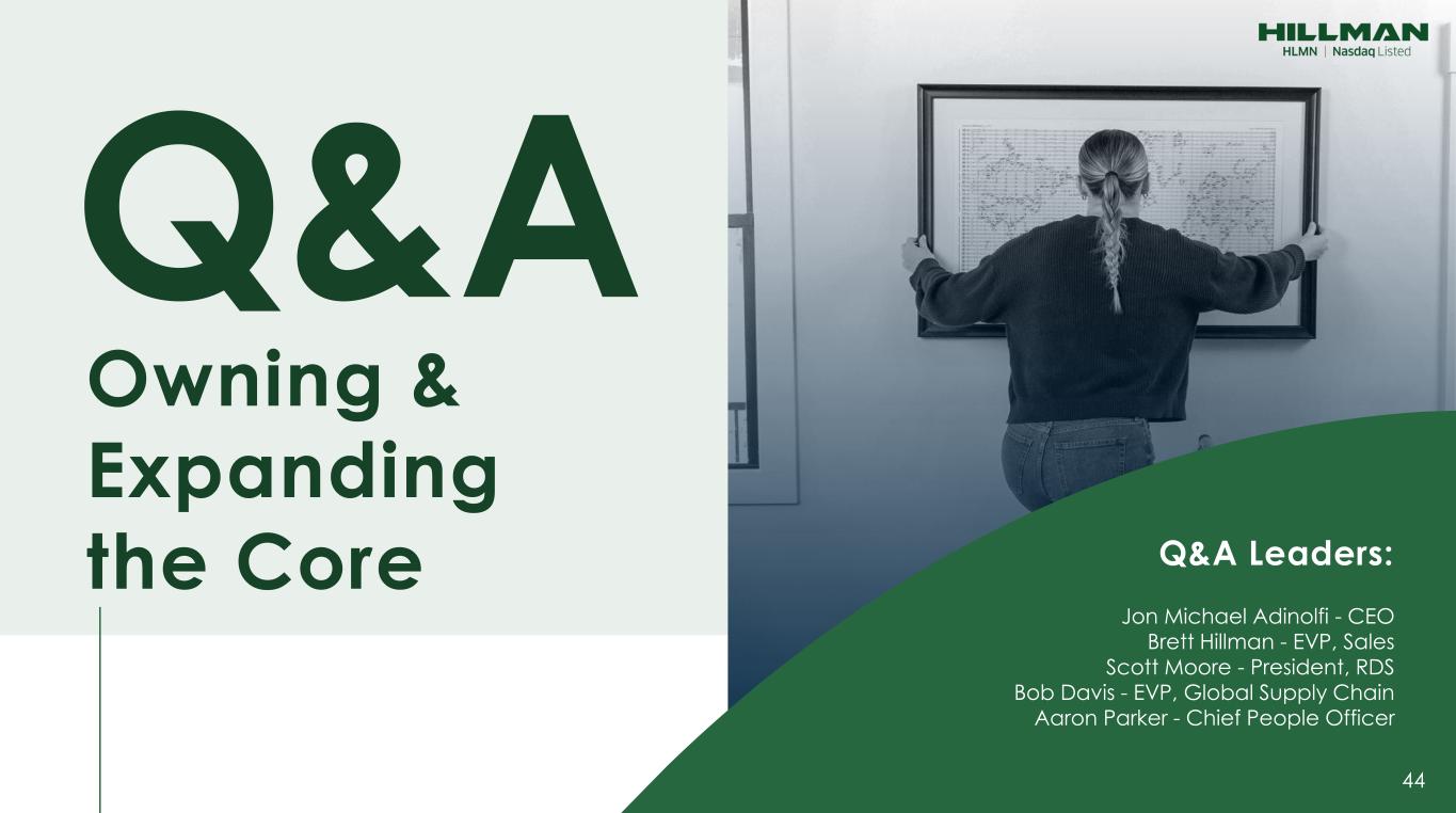 #26673F #102F93 #279A56 #4EA72E#239FFF #0E2841 #279A56 #4EA72E Owning & Expanding the Core Q&A Leaders: Jon Michael Adinolfi - CEO Brett Hillman - EVP, Sales Scott Moore - President, RDS Bob Davis - EVP, Global Supply Chain Aaron Parker - Chief People Officer 44 text