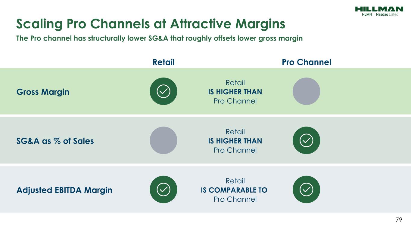 #26673F #102F93 #279A56 #4EA72E#239FFF #0E2841 #279A56 #4EA72E Targeting an 8%-12% revenue CAGR over the next 5 years driven by multiple levers Hillman’s Path to $2.5 Billion of Net Sales text Extensive Product Breadth Field Sales Team Innovation Direct-to- Store Distribution Category Manageme nt “Dual Faucet” Global Sourcing 2025 Core Growth New Business Wins M&A 2030 $1.6B $2.5B • Market Growth • Customer Footprint • Category Management • Price • Existing Category Expansion • Pro Channel Penetration • New Category Expansion • Pro Distribution • Industrial MRO Note: Growth bridge components are not drawn to scale. 78