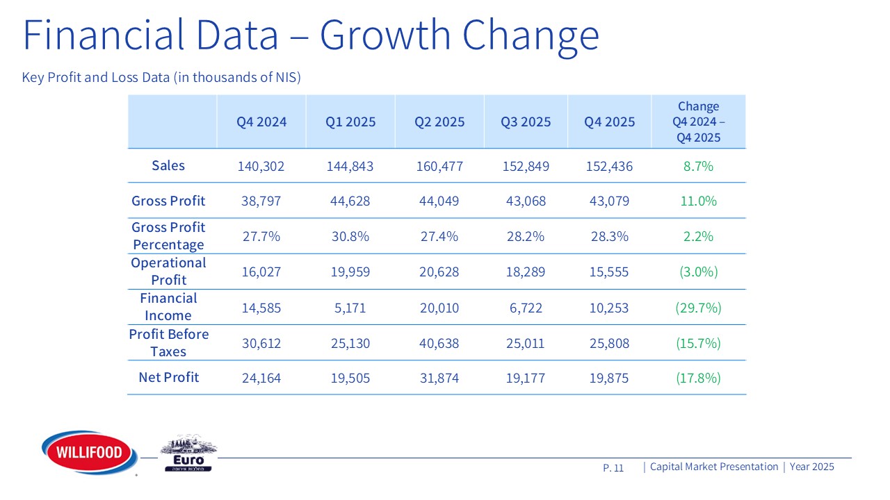 NIS) Change Q4 2024 – Q4 2025 Q4 2025 Q3 2025 Q2 2025 Q1 2025 Q4 2024 8.7% 152,436 152,849 160,477 144,843 140,302 Sales 11.0% 43,079 43,068 44,049 44,628 38,797 Gross