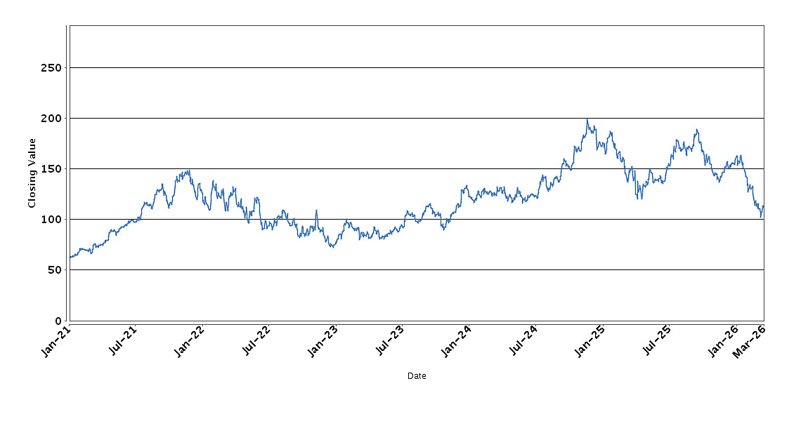 The graph below sets forth the historical performance of the Reference Asset based on the daily Closing Value from January 4, 2021 through March 20, 2026. We obtained the Closing Values shown in the graph below from Bloomberg. We have not independently verified the accuracy or completeness of the information obtained from Bloomberg. These historical closing values may have been adjusted to reflect certain corporate actions such as stock splits and reverse stock splits.