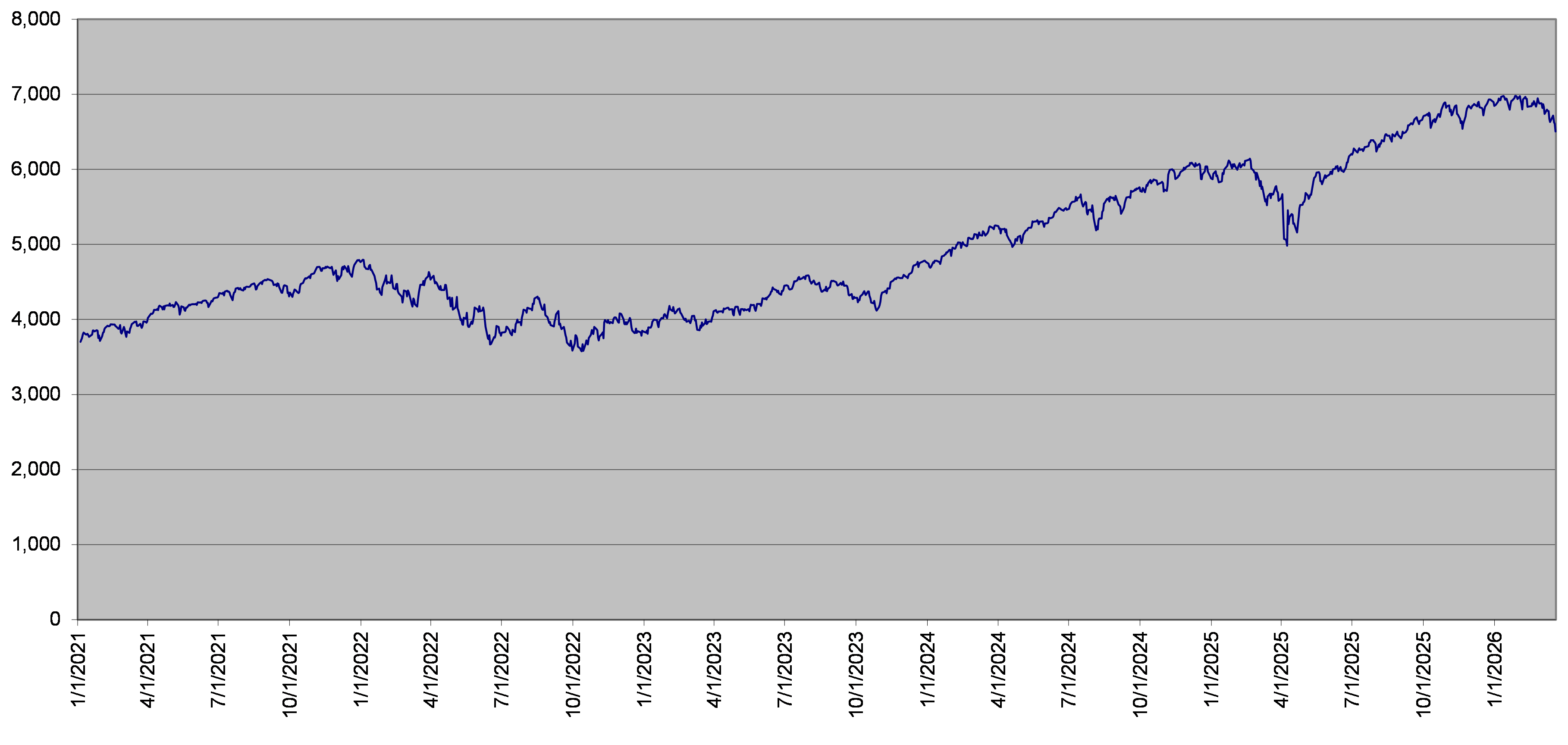 The closing level of the underlier on March 20, 2026 was 6,506.48. The following graph sets forth the daily closing levels of the underlier for the period noted below. We obtained the historical information presented in this document from Bloomberg Financial Markets, without independent verification. The underlier has at times experienced periods of high volatility. You should not take the historical closing levels of the underlier as an indication of its future performance, and no assurance can be given as to the closing level of the underlier at any time.