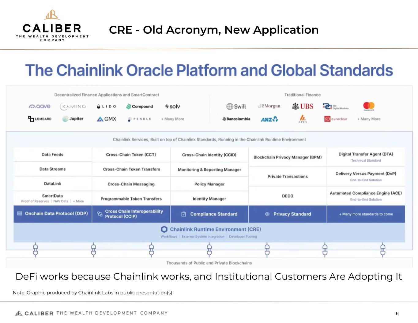 CRE - Old Acronym, New Application 6 DeFi works because Chainlink works, and Institutional Customers Are Adopting It Note: Graphic produced by Chainlink Labs in public presentation(s)