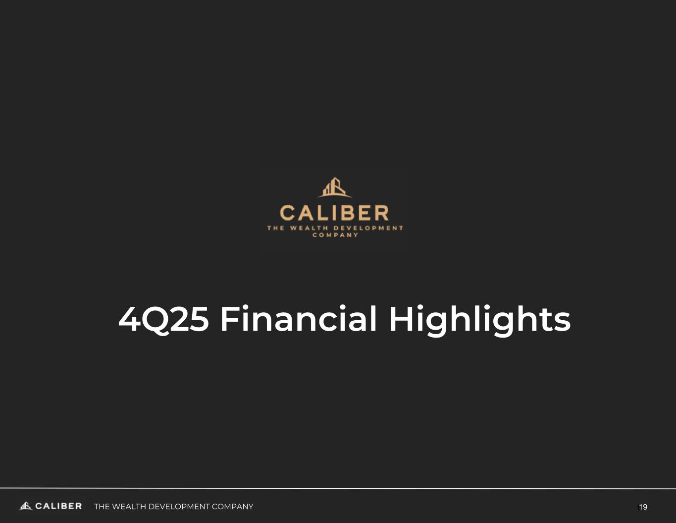 19THE WEALTH DEVELOPMENT COMPANY 19 4Q25 Financial Highlights